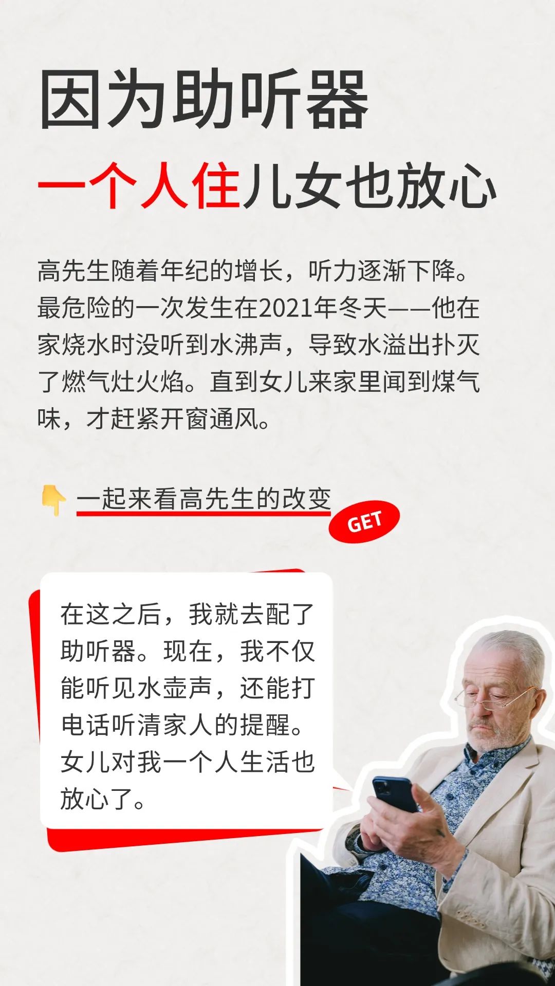 因此要选择能够精准补偿缺失频段的助听器,有效避免像高先生那样因听不到危险信号而发生的居家事故。