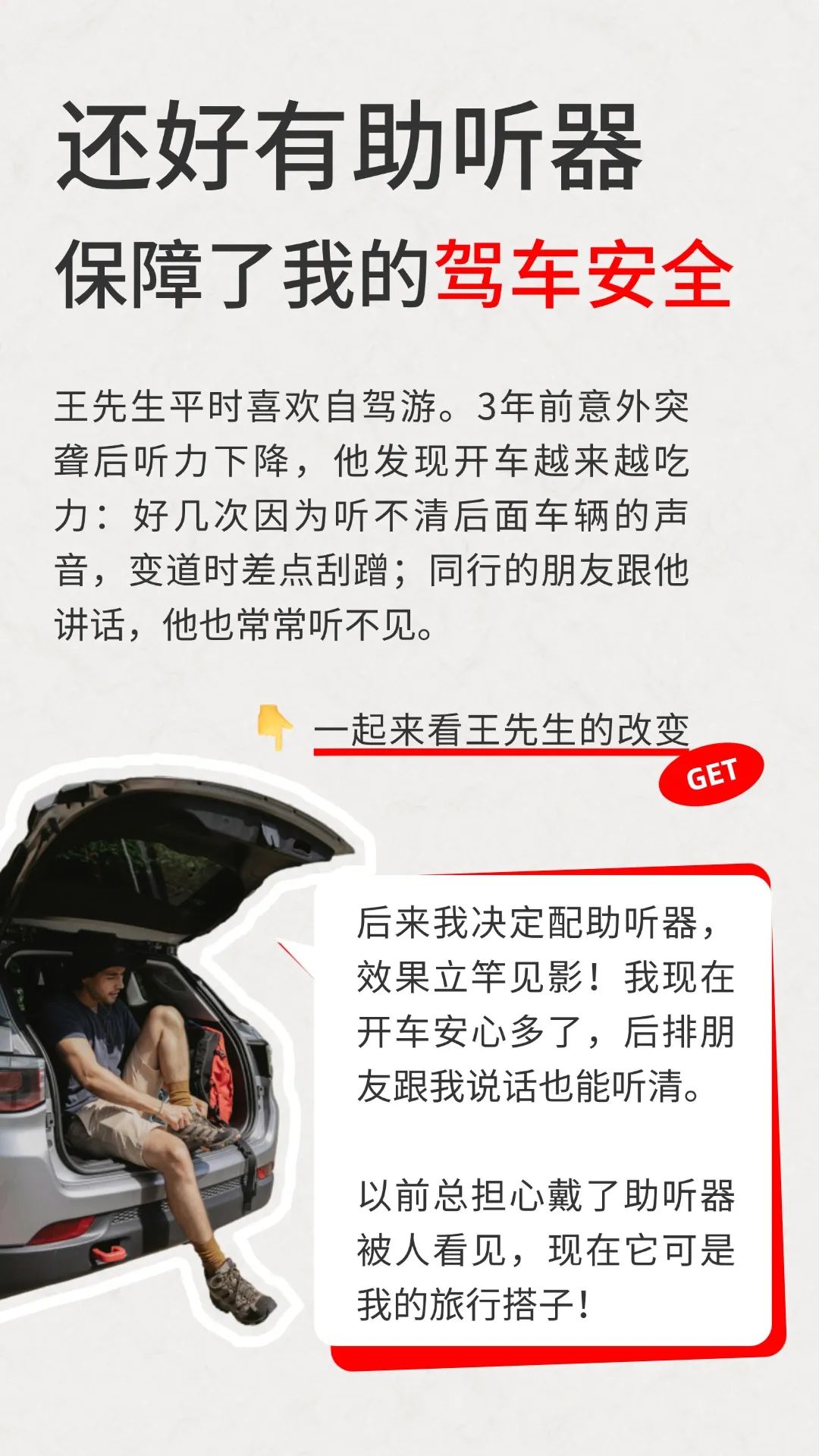 王先生开车时,最怕的就是分辨不清声音来源。因此建议选择配备方向性麦克风系统的助听器。